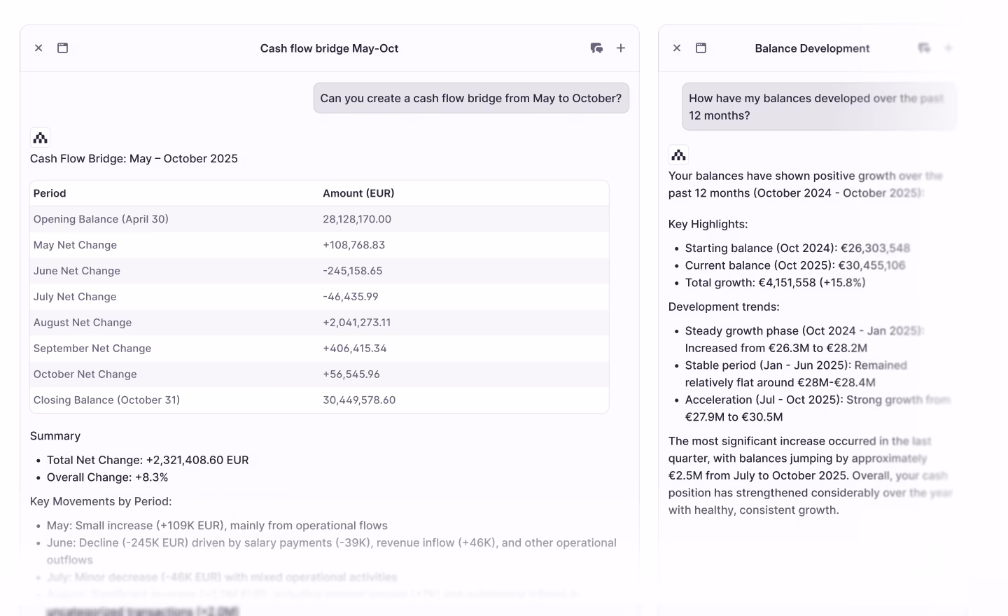 - “Tell me how my balances developed in EUR over the past nine months.”